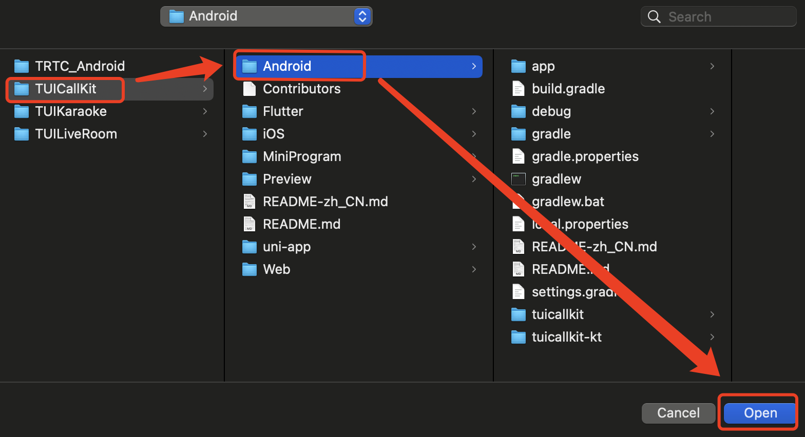2. Android Studio から TUICallKit Android プロジェクトを開きます。