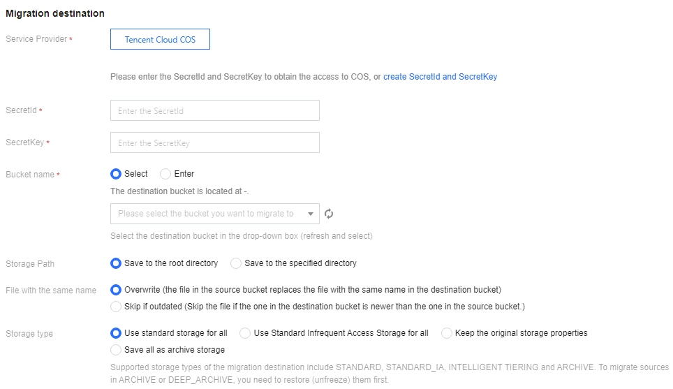 host_base and host_bucket, enter your COS domain name.vi .s3cfg# Configuration file content:access_key=AKxxxsecret_key=SKxxxhost_base = cluster-xxxx.cos-cdc.ap-guangzhou.myqcloud.comhost_bucket = cluster-xxxx.cos-cdc.ap-guangzhou.myqcloud.com/%(bucket)use_https=Falsesignature_v2 = False