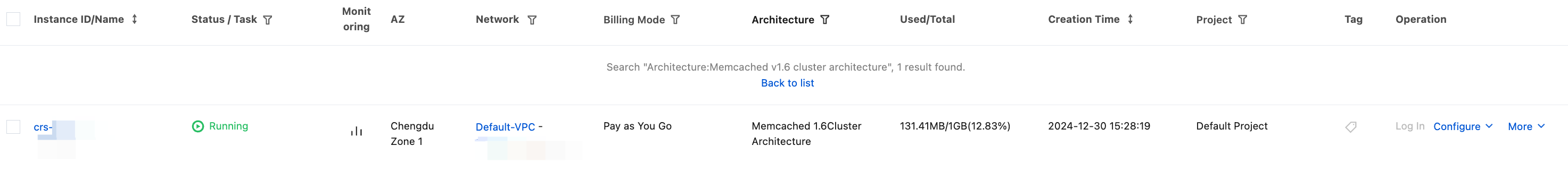 Click Log In to access the database via the DMC console. For specific operations, see Connect Distributed Cache Instance.