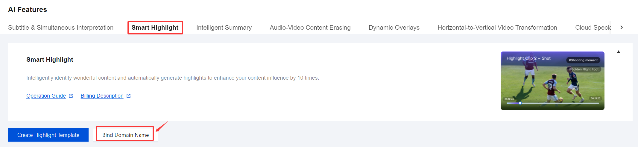 You can also unbind and bind domains and smart highlight templates on the Domain Management page. For details, see Smart Highlight Configuration.