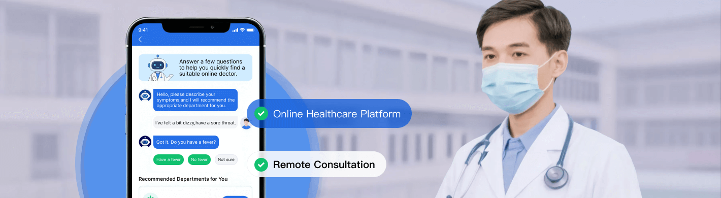 AI chatbot supports both text and voice input interaction. Based on the chief complaint, it automatically associates potential related symptoms and quickly guides patients to the suitable departments or doctors.