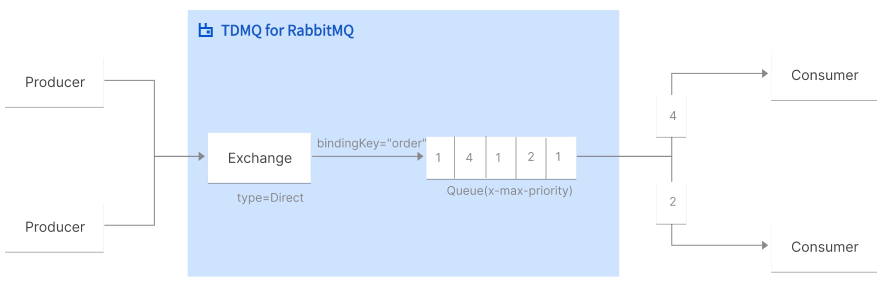 When messages are consumed, if the importance of them varies, and higher-priority messages are desired to be consumed preferentially, the priority queue feature of TDMQ for RabbitMQ can be used in this case to ensure that messages with higher priority are consumed first.