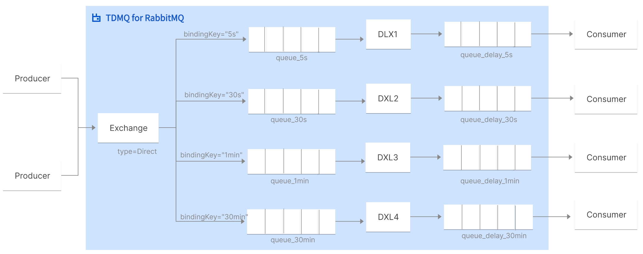 TDMQ for RabbitMQ supports various messaging patterns of native RabbitMQ as well as dead letter switch and standby switch, eliminating your concerns over message loss caused by message expiration or routing failure. In addition, it supports queue priority to ensure that messages are consumed by priority.