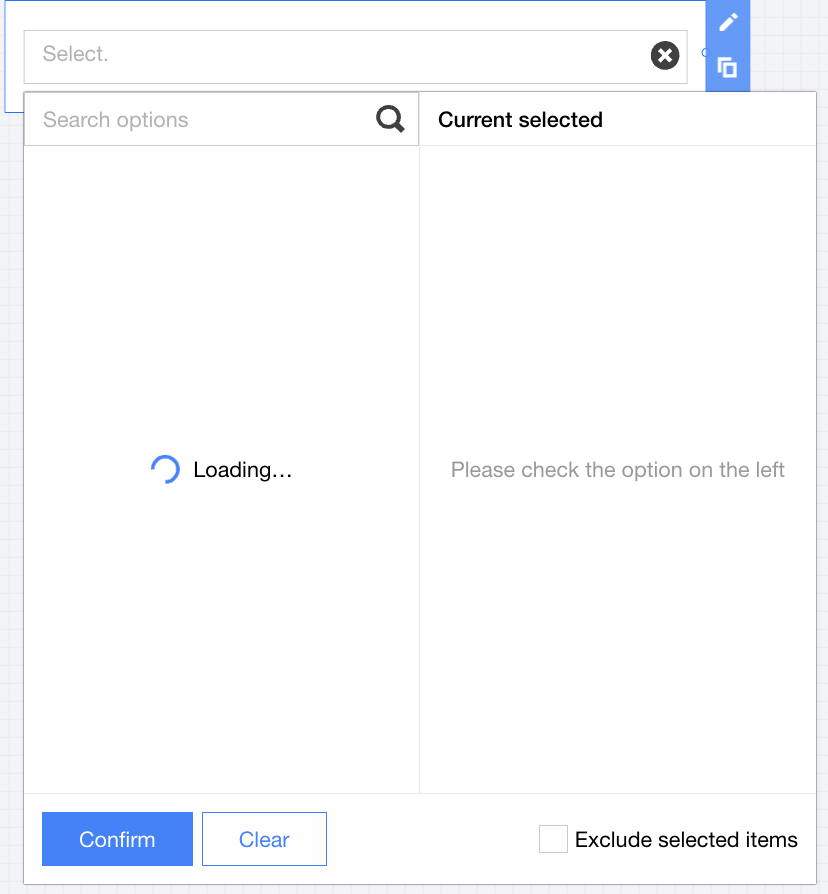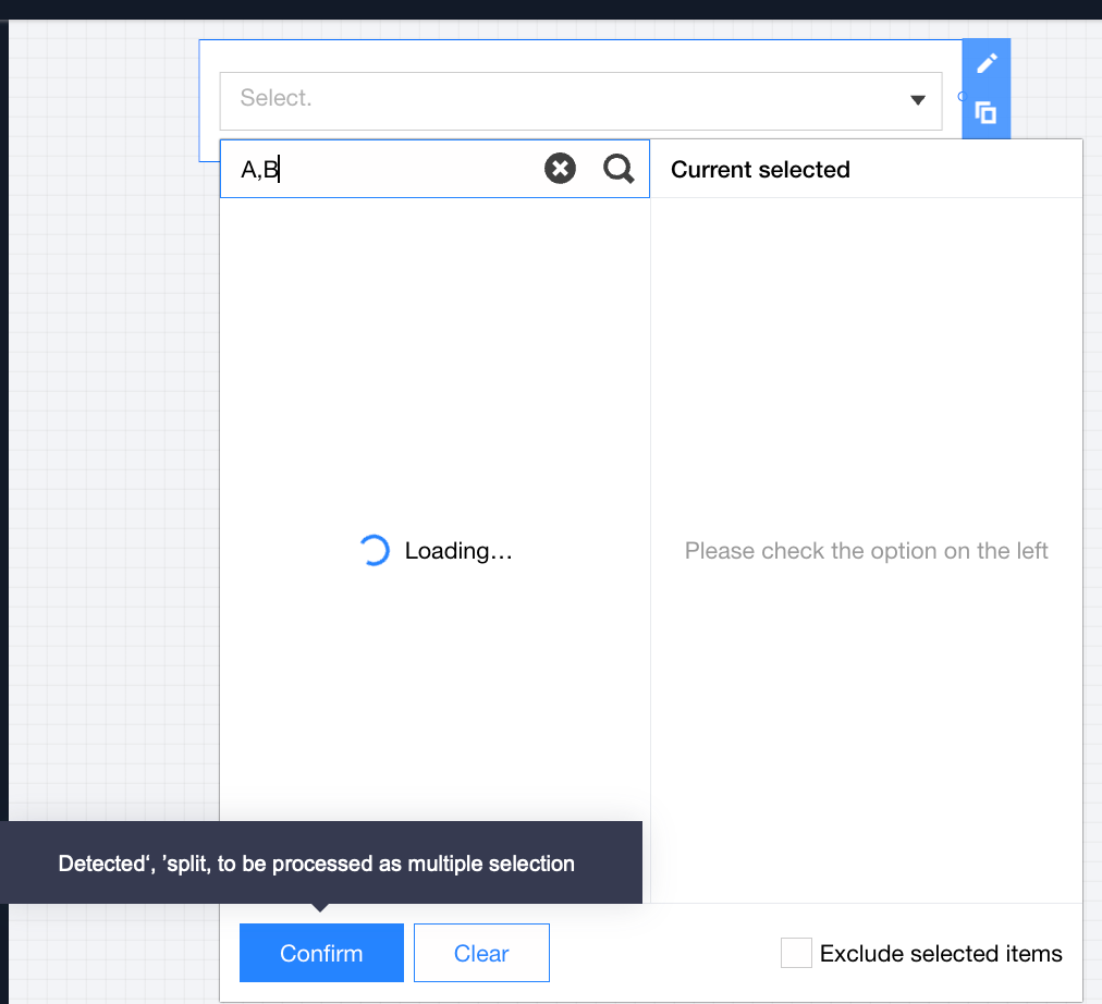 Support quick input: When the input value is entered but the drop-down hasn't finished loading, you can confirm submission directly without waiting for loading to complete, just filter the user-submitted input.