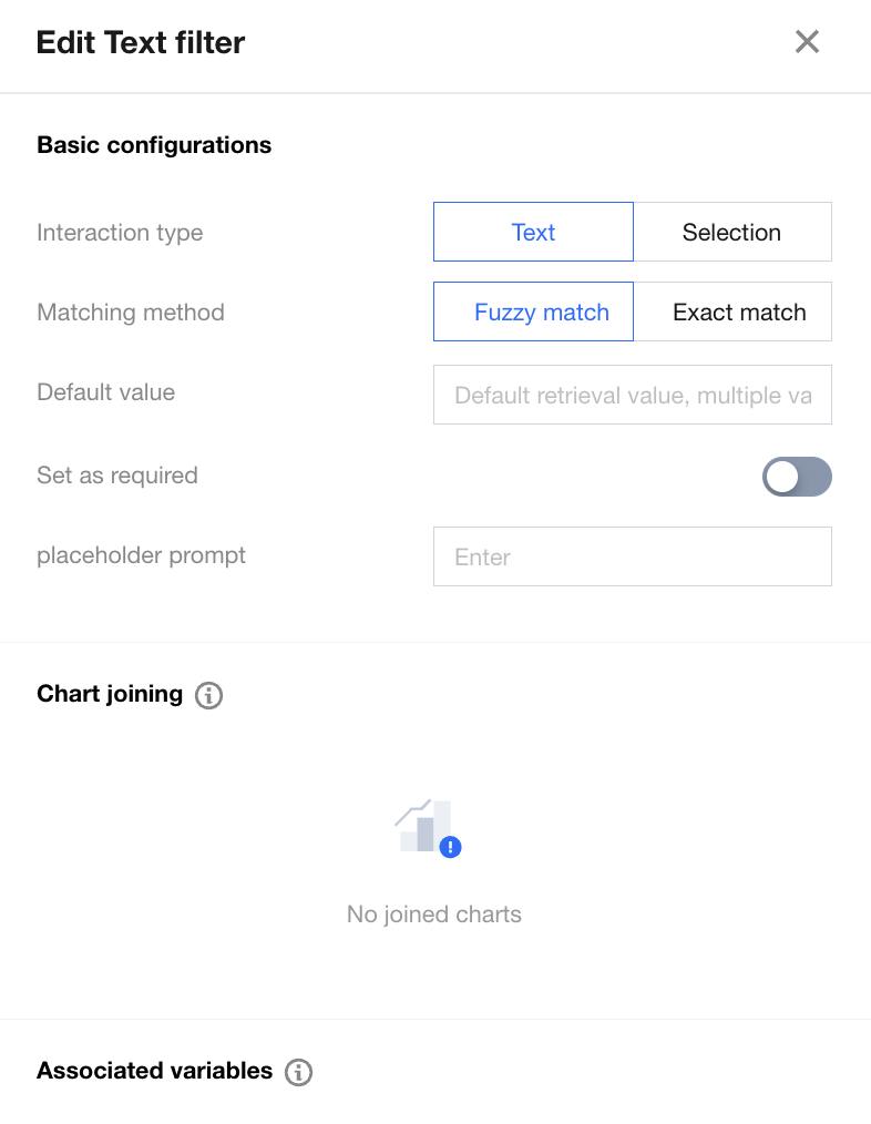 Text input: No need for an associated field, user-submitted text as filtering conditions, commonly used for interaction methods similar to search, such as querying employee output value information for the name "Zhang San";