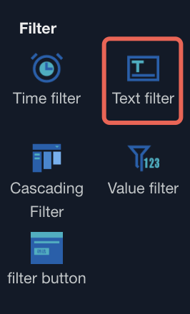 1. Enter the editor, select text filter: from component library > interactive component category.
