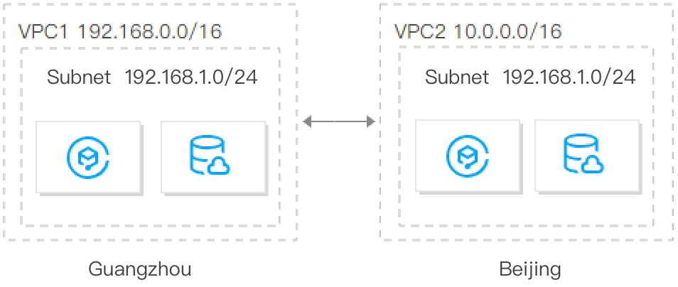 Se você precisar criar vários VPCs que se comunicam entre si ou com IDCs, certifique-se de que os intervalos de IP dos VPCs não se sobreponham ao intervalo de IP de par.