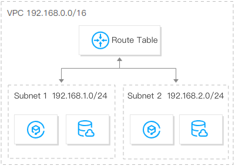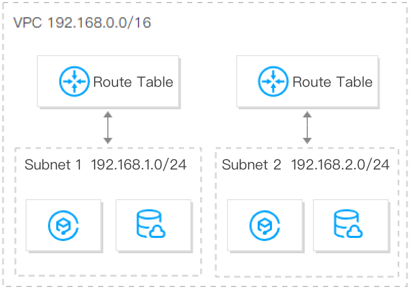 É possível criar várias sub-redes e tabelas de rotas em um único VPC para gerenciamento de tráfego detalhado. Além disso, recomendamos que você implante sub-redes em zonas de disponibilidade diferentes para a recuperação de desastre delas.