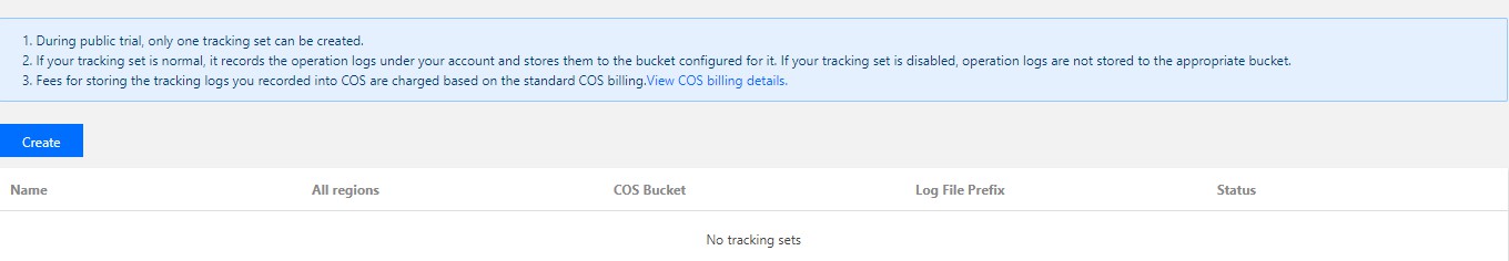 您可以通过腾讯云控制台快速了解操作审计服务。通过控制台,您可以查看操作记录,创建一个跟踪集并编辑其存储位置,还可以对已创建的跟踪集进行删除操作,以及关闭跟踪集记录日志。