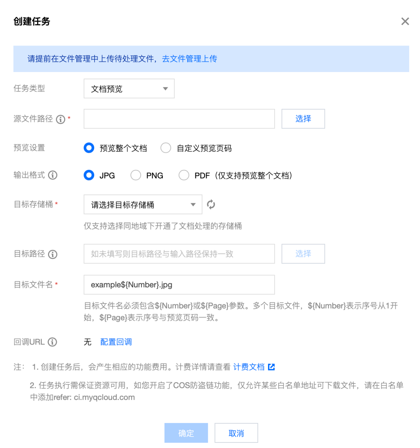 针对已存在于存储桶中的文档,您可通过创建任务的方式进行文档转图片、文档转 PDF 处理。