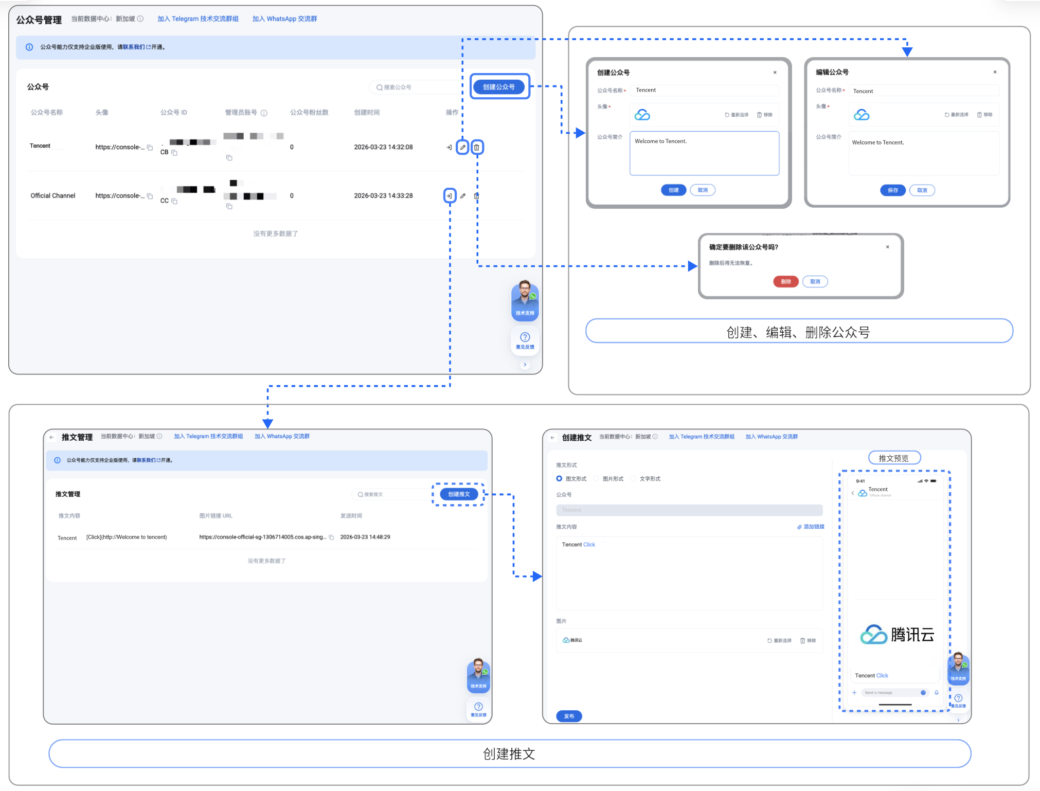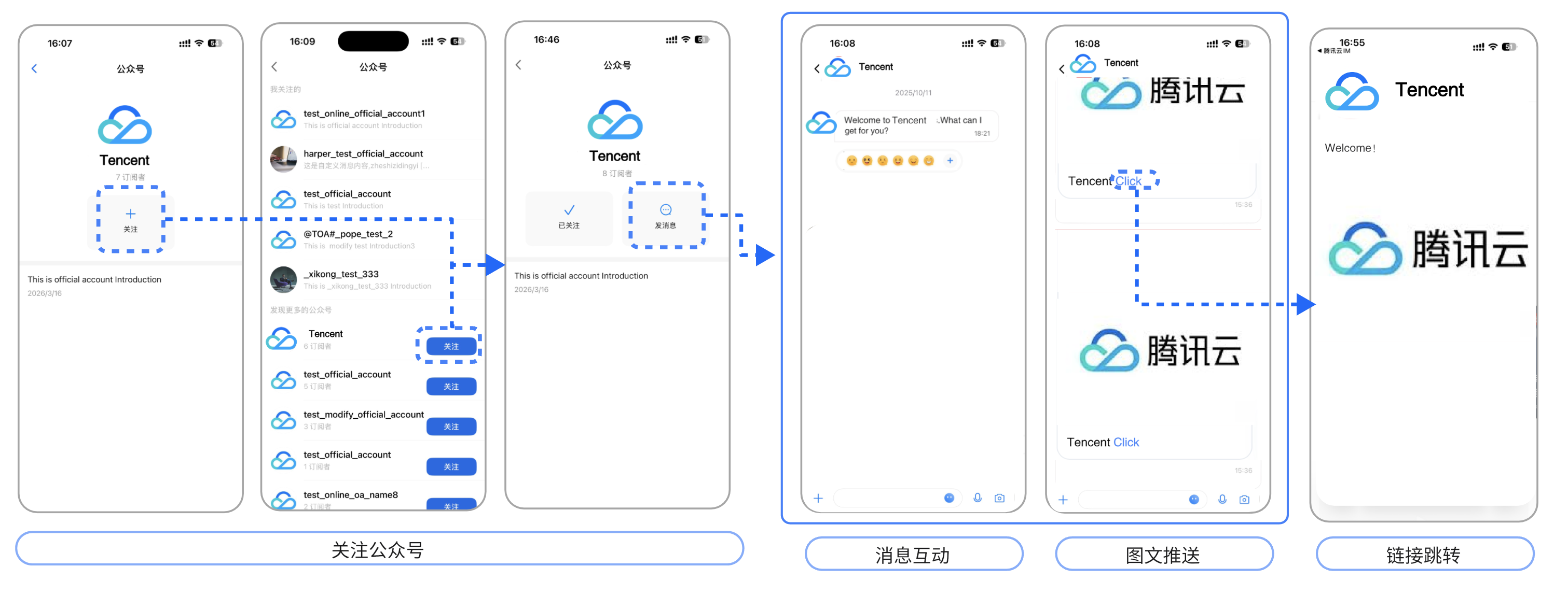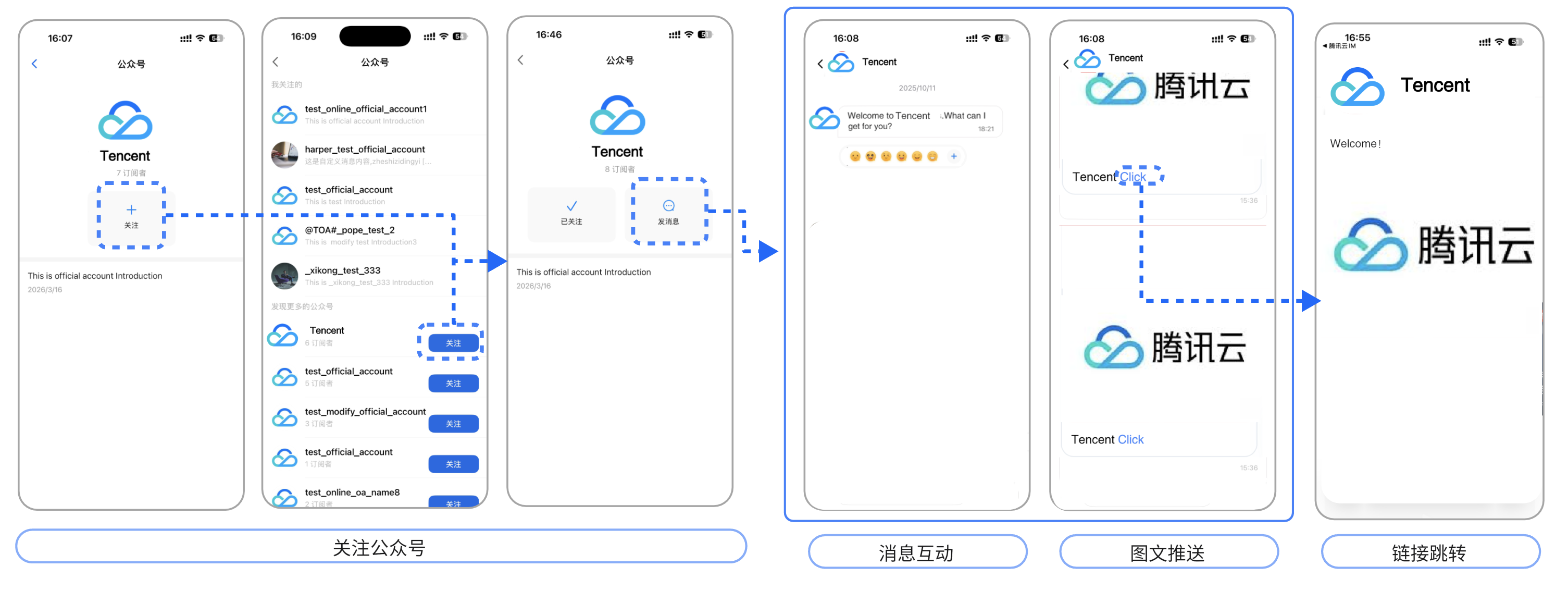 [[V2TIMManager sharedInstance] subscribeOfficialAccount:@"official_test" succ:^ {NSLog(@"订阅公众号成功");} fail:^(int code, NSString *desc) {NSLog(@"订阅公众号失败, code: %d, msg: %@", code, msg);}];[[V2TIMManager sharedInstance] addFriendListener:self];- (void)onOfficialAccountSubscribed:(V2TIMOfficialAccountInfo *)officialAccountInfo {// 公众号订阅通知}- (void)onOfficialAccountDeleted:(NSString *)officialAccountID {// 订阅的公众号被销毁通知}- (void)onOfficialAccountInfoChanged:(V2TIMOfficialAccountInfo *)officialAccountInfo {// 订阅的公众号资料更新通知}