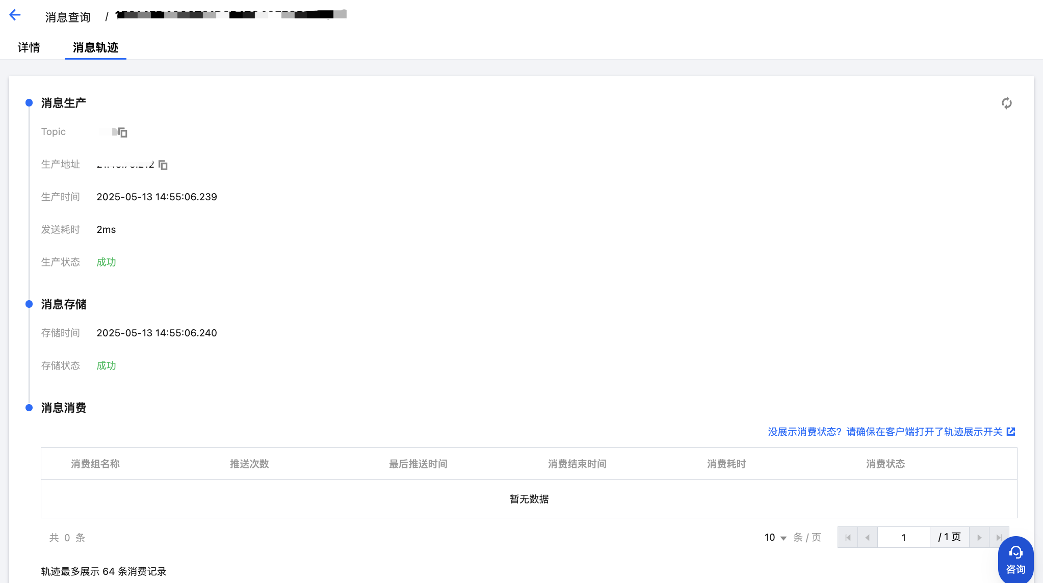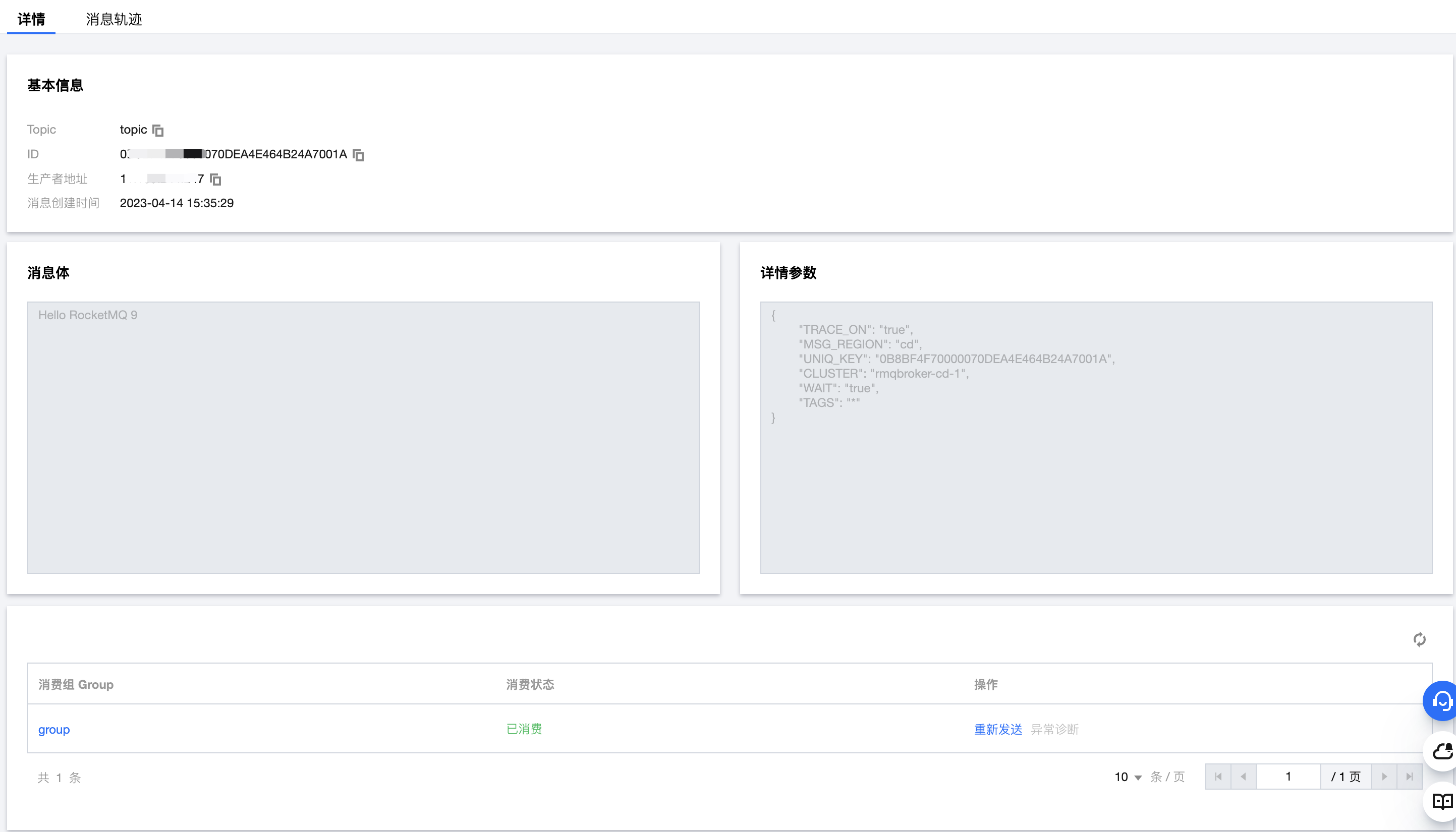 DefaultLitePullConsumer pullConsumer = new DefaultLitePullConsumer(NAMESPACE,groupName,new AclClientRPCHook(new SessionCredentials(AK, SK)));// 设置NameServer的地址pullConsumer.setNamesrvAddr(NAMESERVER);pullConsumer.setConsumeFromWhere(ConsumeFromWhere.CONSUME_FROM_LAST_OFFSET);pullConsumer.setAutoCommit(false);pullConsumer.setEnableMsgTrace(true);pullConsumer.setCustomizedTraceTopic(null);