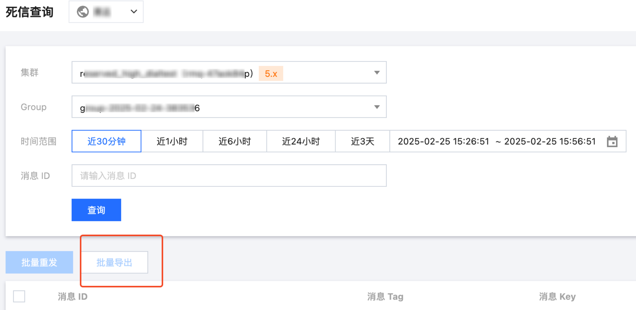 集群:选择需要查询的死信消息所在的集群。