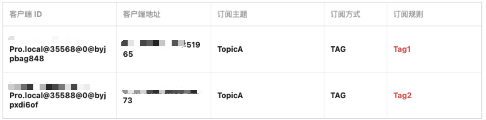 同一个消费组下的所有消费者过滤规则必须一致,包括 Tag 的数量和 Tag 的顺序,例如:consumer1 订阅 TopicB 且 Tag 为 Tag1||Tag2,consumer2 订阅 TopicB 的 Tag 也必须是 Tag1||Tag2,不能只订阅 Tag1、只订阅 Tag2 或者订阅 Tag2||Tag1。