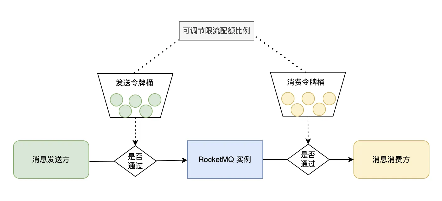 3. 限流比例调整不合适,我们提供了可以调整发送和消费限流配额比例,默认为 5:5 ,最多可以调整为 2:8 或者 8:2,所以如果触发了限流,也要检查一下配置的限流配额比例是否合理。
