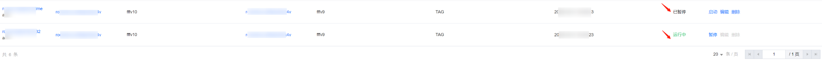 创建完成的任务默认为 “运行中” 的状态, 状态为 “运行中” 的任务,不可以进行编辑、删除和重置消费位点操作;如需进行以下操作,需要先暂停任务,然后再进行以下操作。