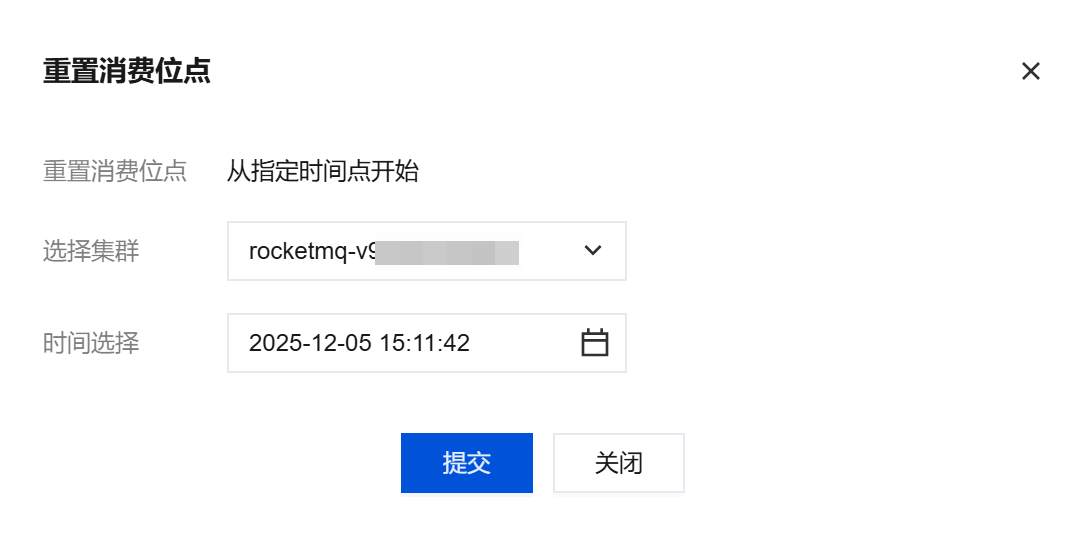重置消费位点:暂停任务后,您可以选择从新的时间位点重新开始复制消息