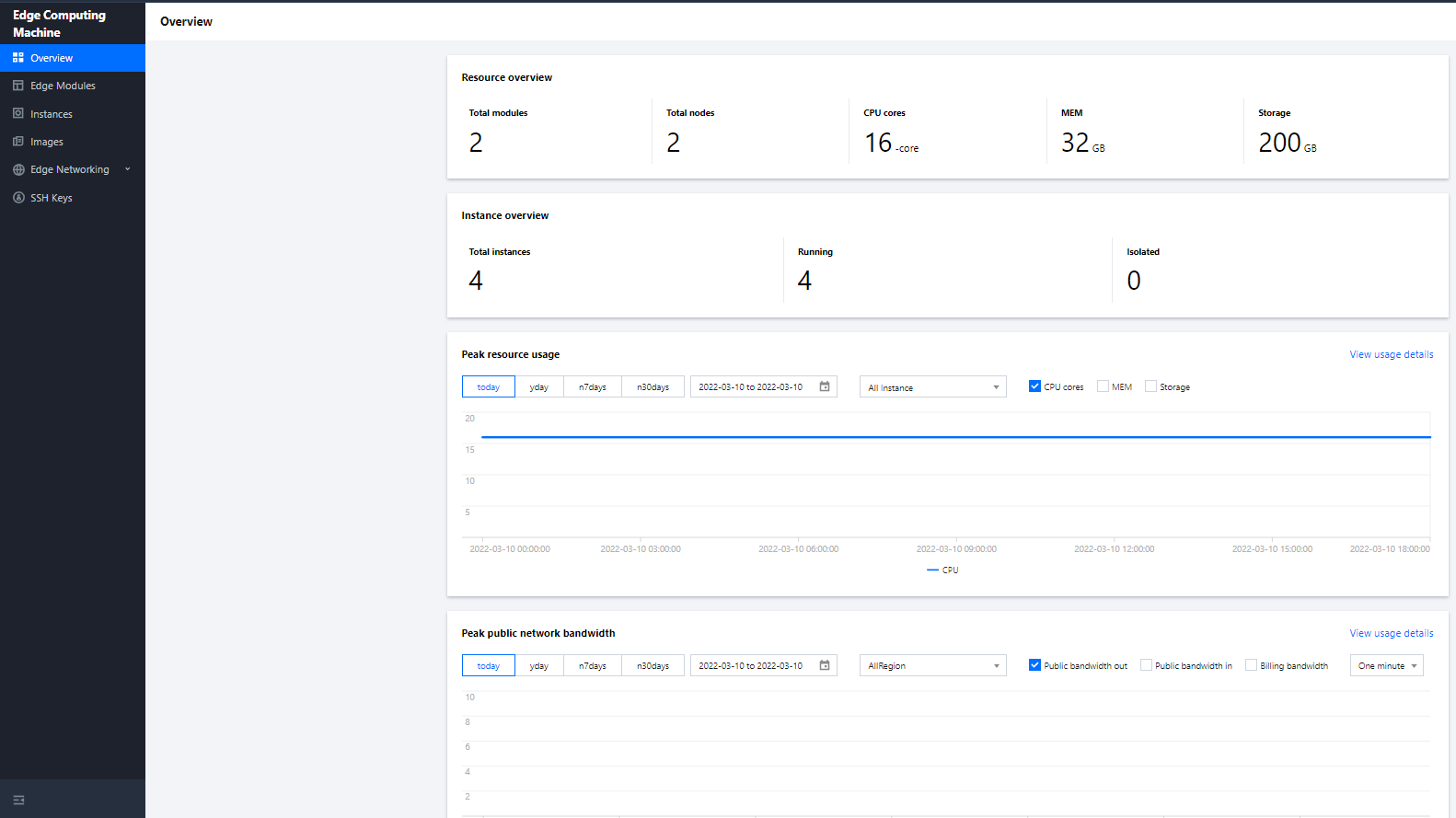 以下为边缘计算机器控制台概览页: