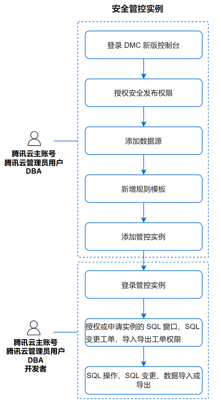 DMC 的实例包括管控实例和非管控实例,其中管控实例涉及多个功能、多个用户角色之间的协同操作,为了便于您尽快掌握管控实例的操作流程,请查看