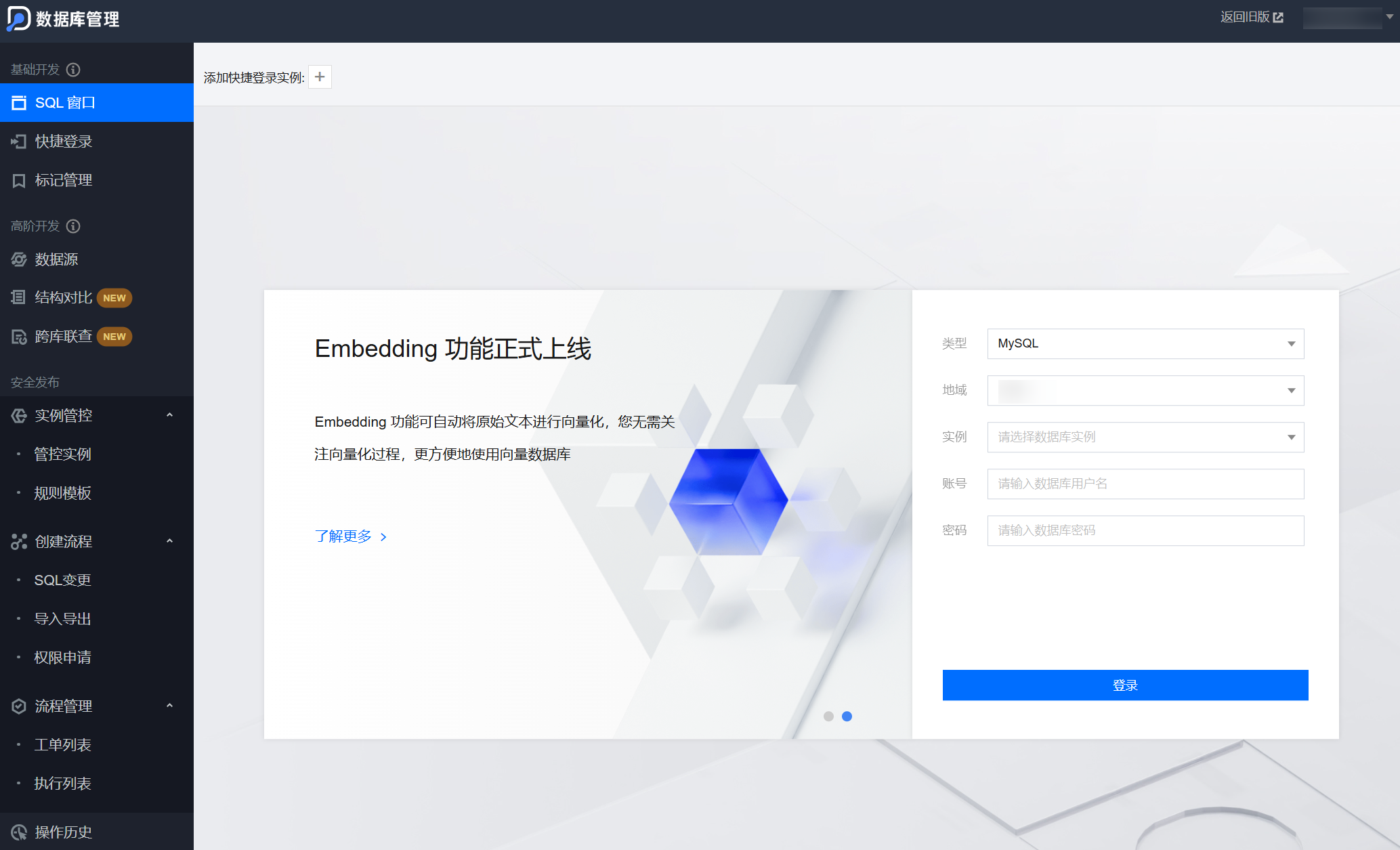 非管控实例操作仅涉及基础开发功能模块,包括 SQL 窗口、快捷登录和标记管理,具体操作说明请参见