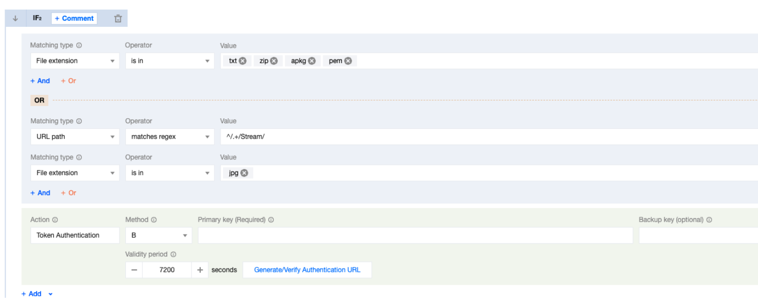TypeB 需要对指定文件类型(后缀为 zip、txt、apkg、pem、jpg)进行身份验证。并且过期时间需要配置为 7200 秒。