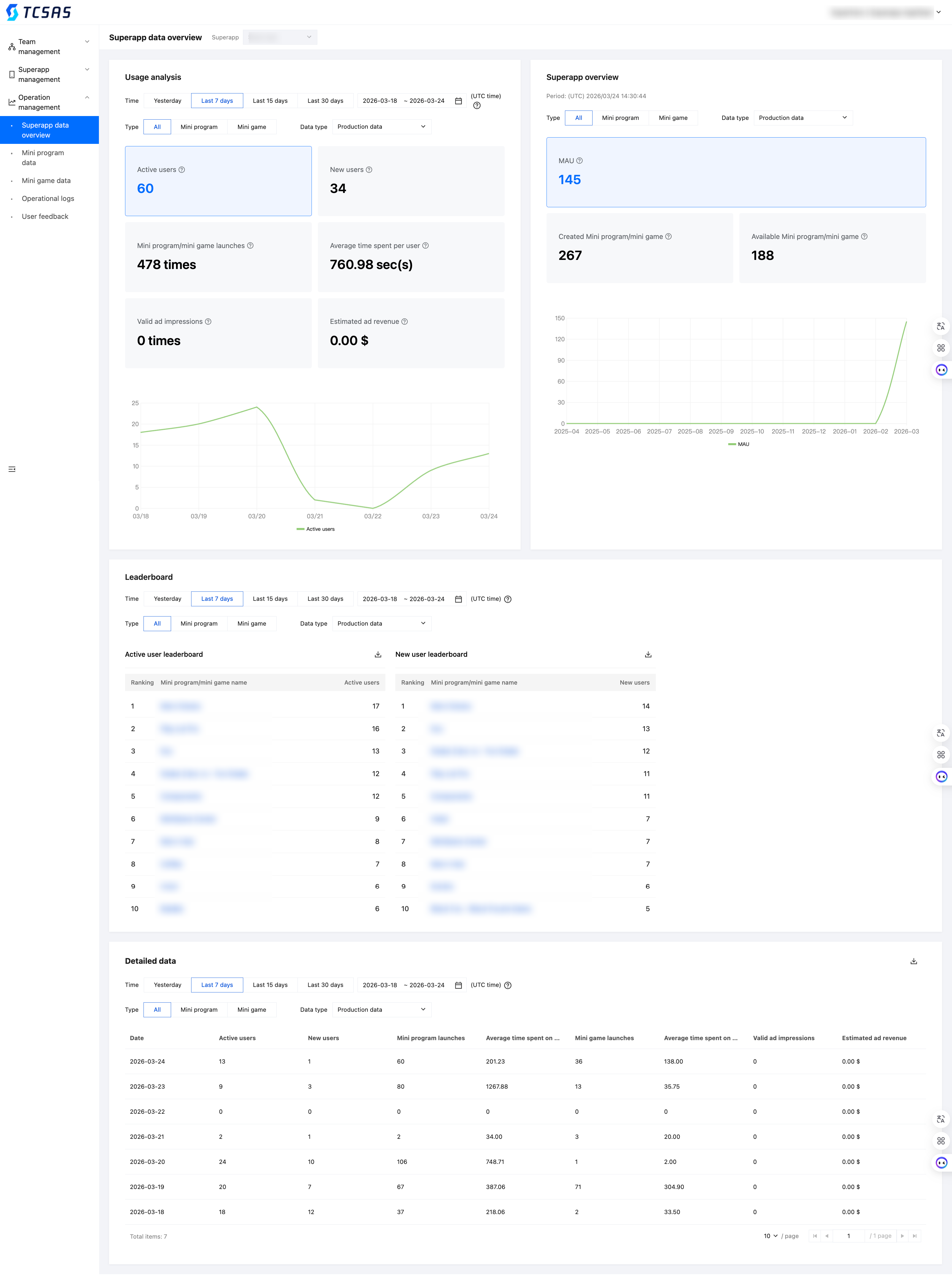 已发布的小程序/小游戏数量 | 统计在 Superapp 中已经发布的小程序/小游戏数量。 |