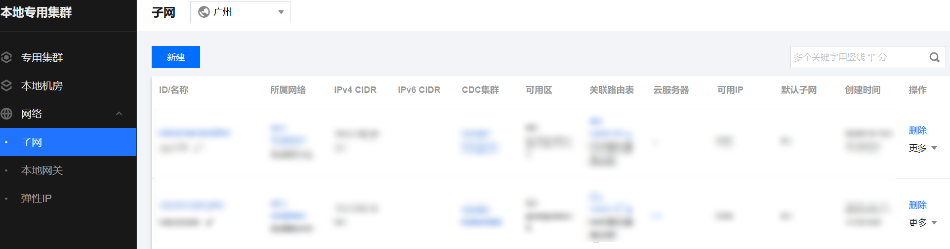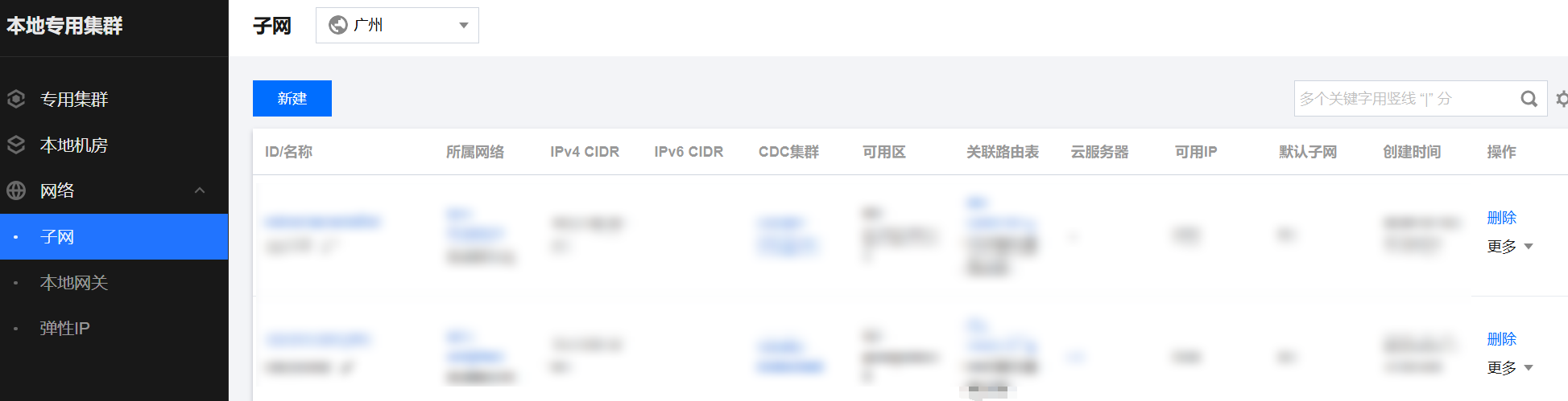 随后即可在子网页面查看您的子网列表。