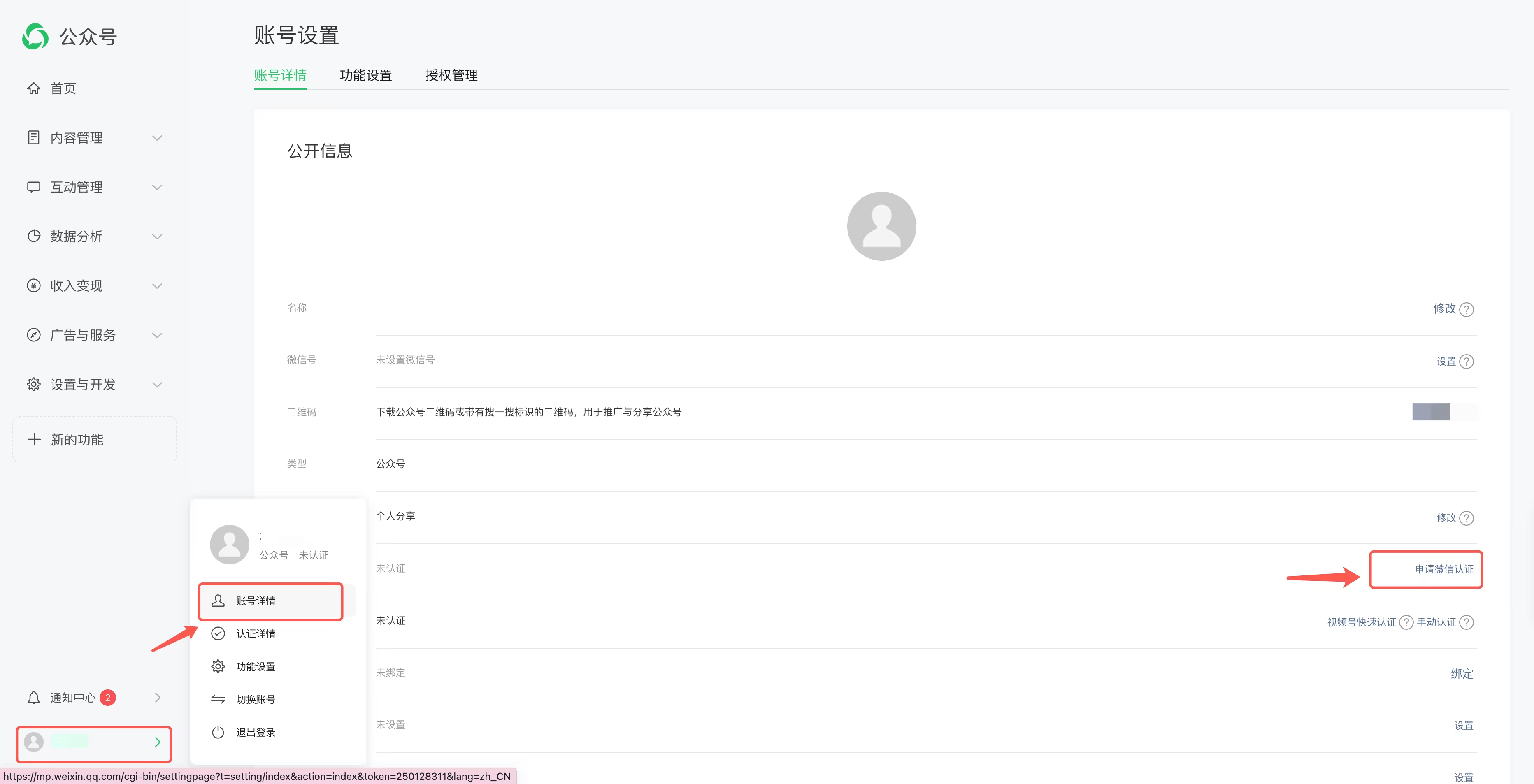 未认证和认证中的公众号无法在5s 后接收到消息,需要在 公众号后台 完成公众号认证。
