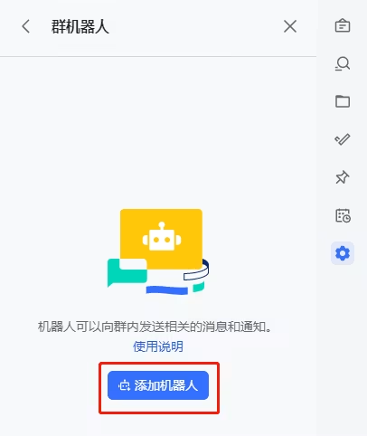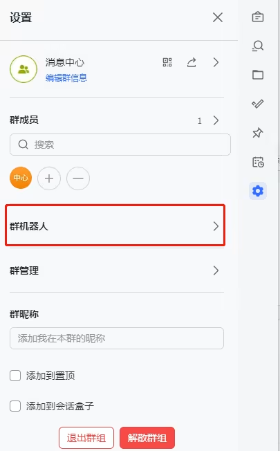 在群机器人页面,单击