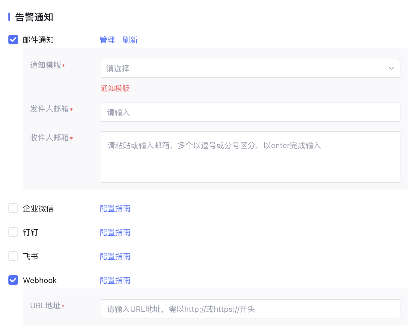 通知模板 | 告警通知的具体邮件正文内容模板。 |