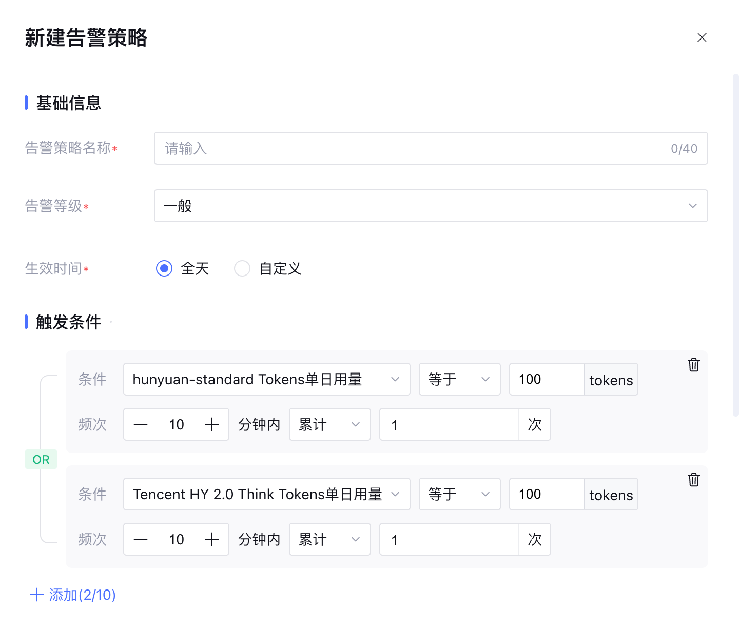 告警策略名称 | 自定义策略名称,用于区分不同告警规则。 |