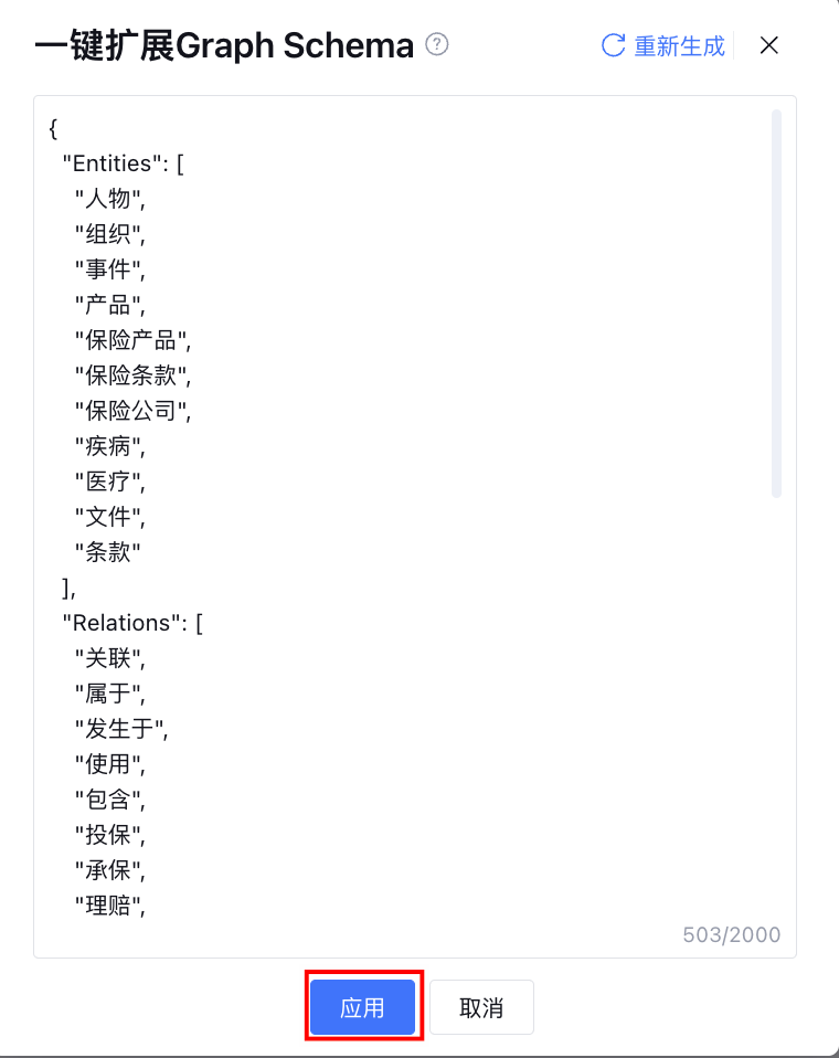 单击应用后将更新输入框中原有的 Graph Schema 内容。