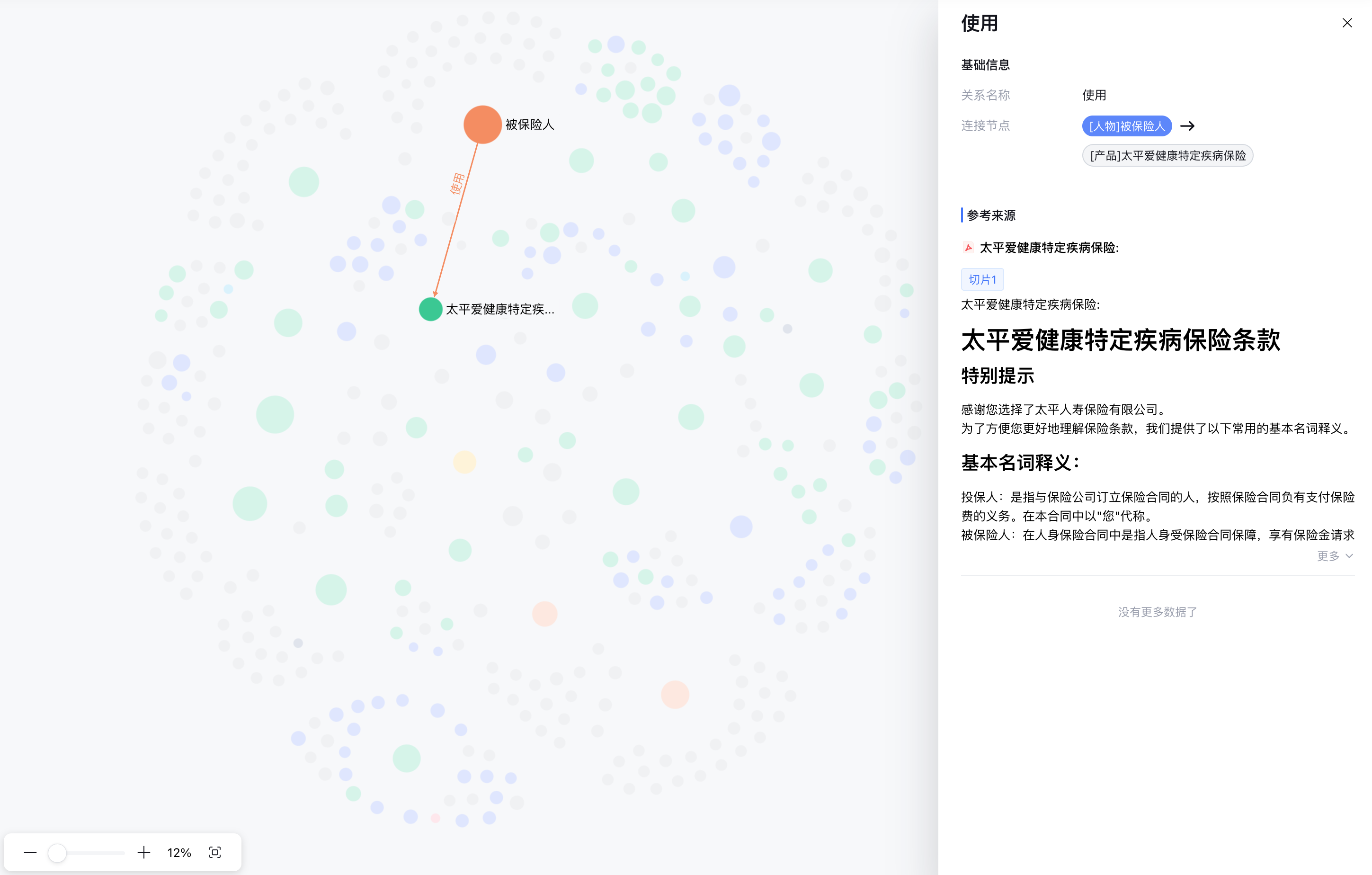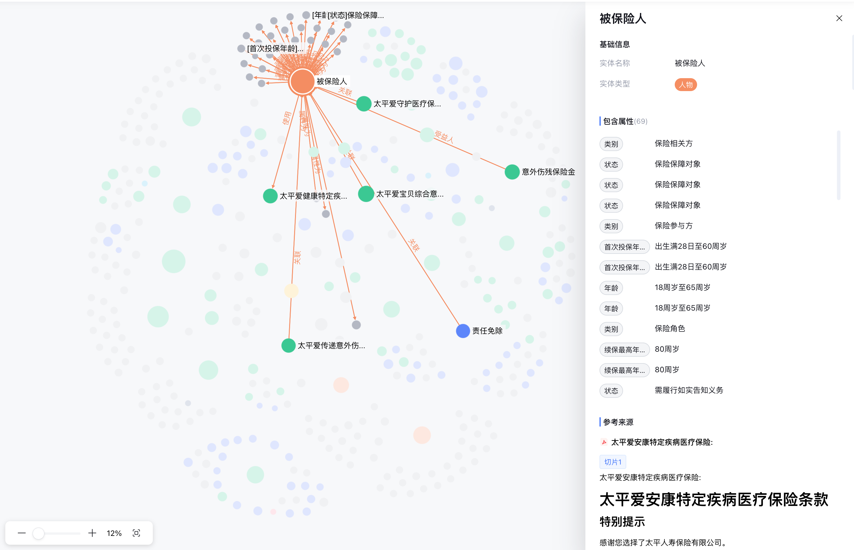 适用于保险条款复杂、产品与人群匹配关系多样的咨询场景。通过构建产品-条款-人群-疾病的关联图谱,支持多条件组合查询,提供清晰、可解释的投保建议。
