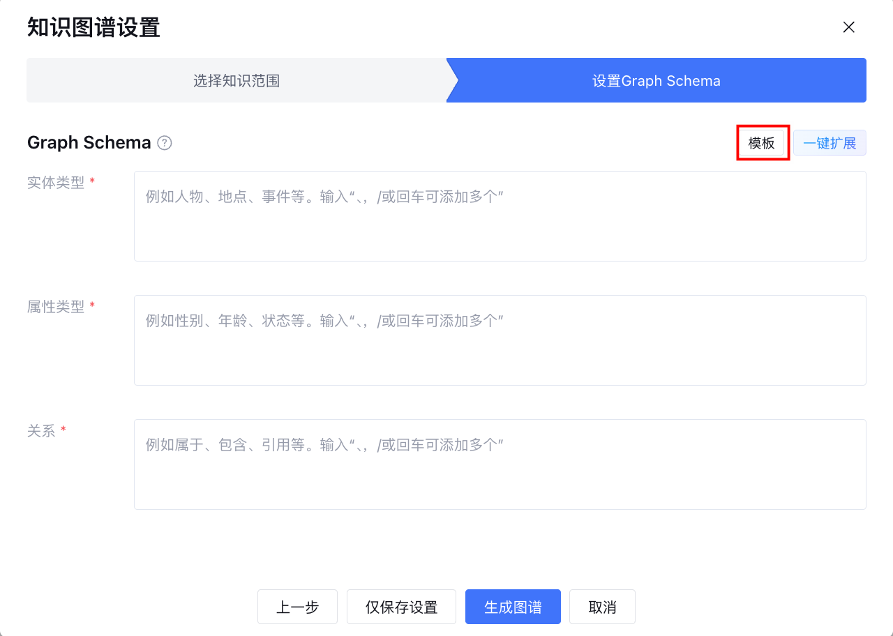 在知识图谱设置阶段,首先选择知识范围,支持以下三种范围: