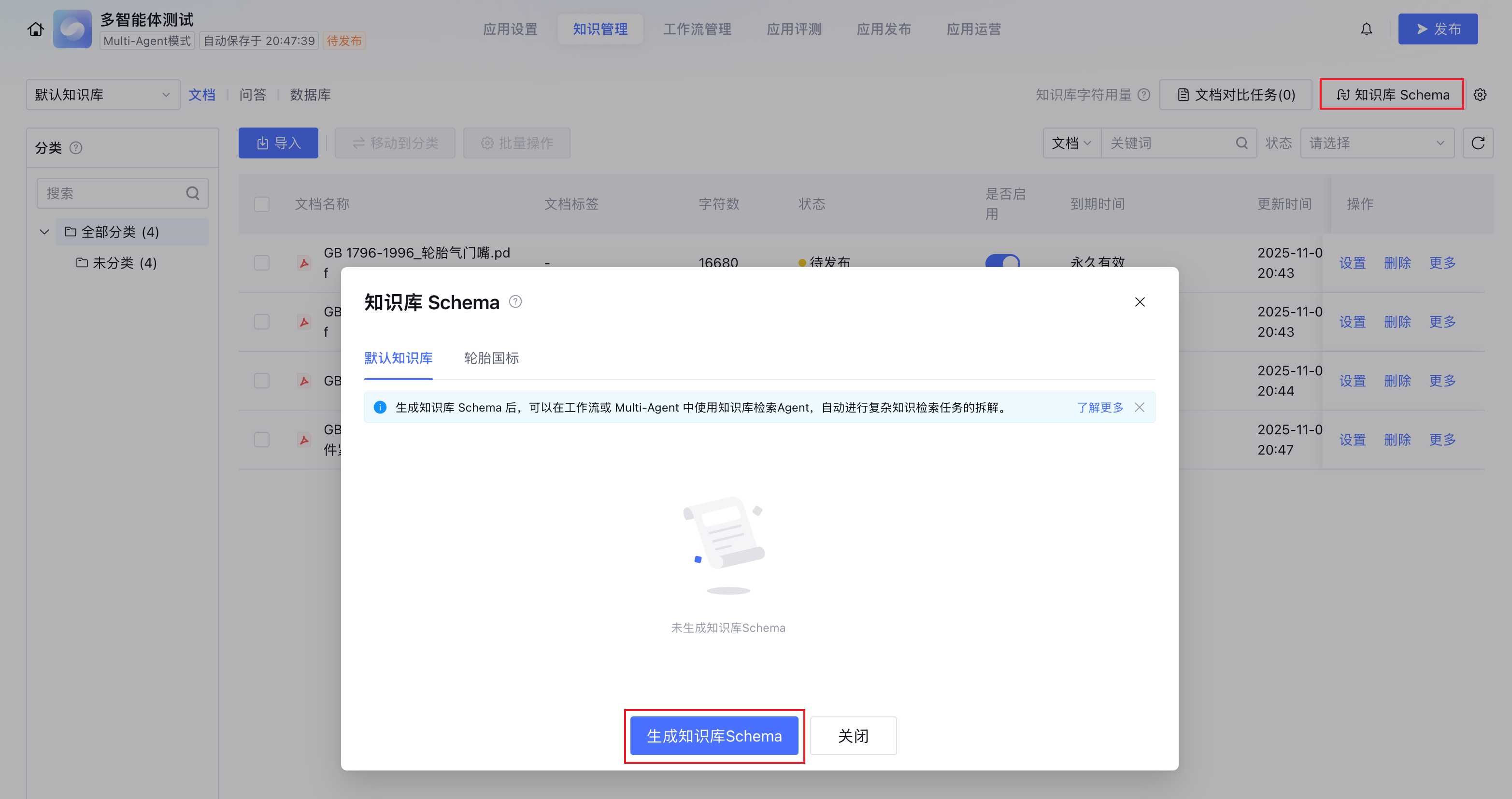 知识库 Schema 生成需要一定时间。建议在知识上传完成后或在知识库更新后,及时重新触发知识库的 Schema 更新。