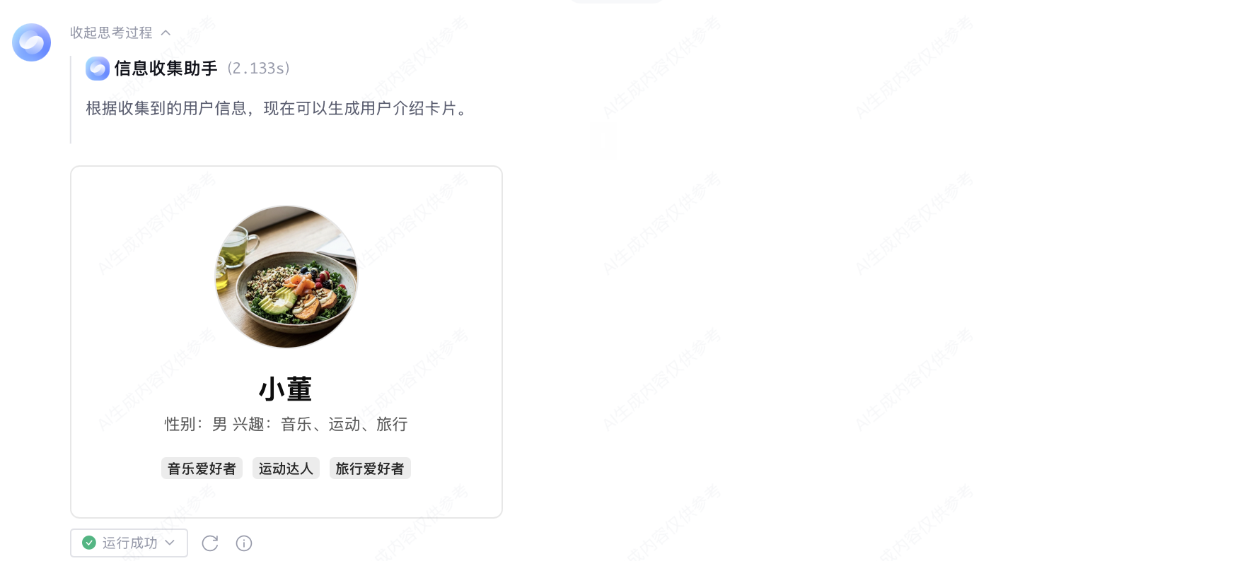 在 Multi-agent 模式下,复合表单澄清询问 Widget 包含 ImageSelect 组件。以下以“应用信息收集助手”为例进行说明: