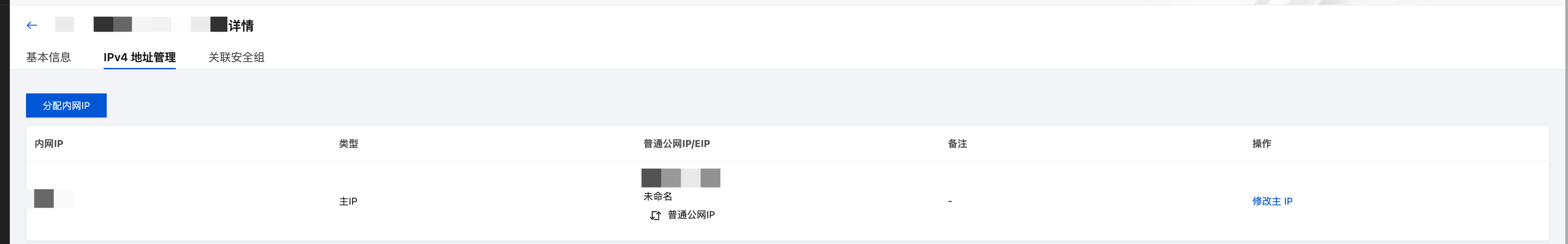 4. 单击选项卡中的 IPv4 地址管理,查看已绑定的主内网 IP。