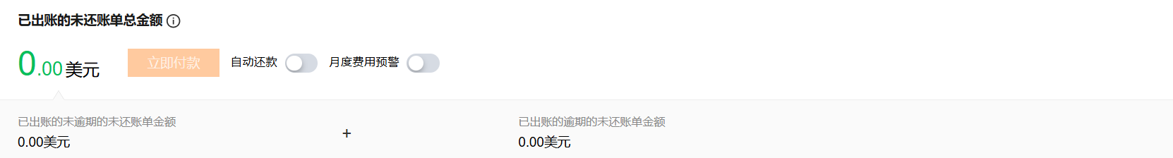 在费用中心总览页面,您可查询已出账的未还账单总金额。
