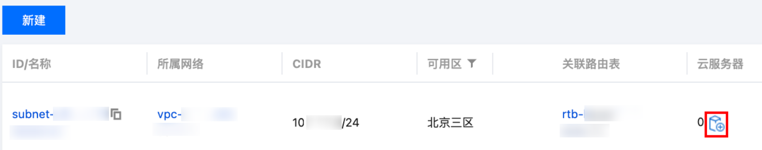 3. 在需要添加云服务器的子网所在行,单击添加云服务器的图标。