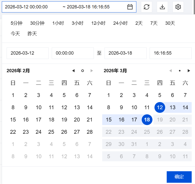 选择时间或者自定义时间范围,查看相关告警历史。