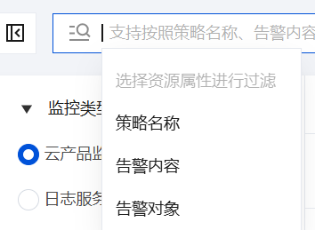 在检索框,可根据策略名称、告警内容、告警对象,快捷过滤,查看相关告警历史。