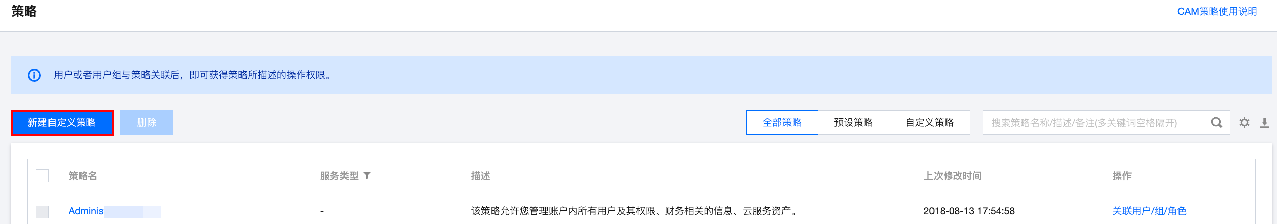 5. 返回策略列表,即可查看刚创建的自定义策略。