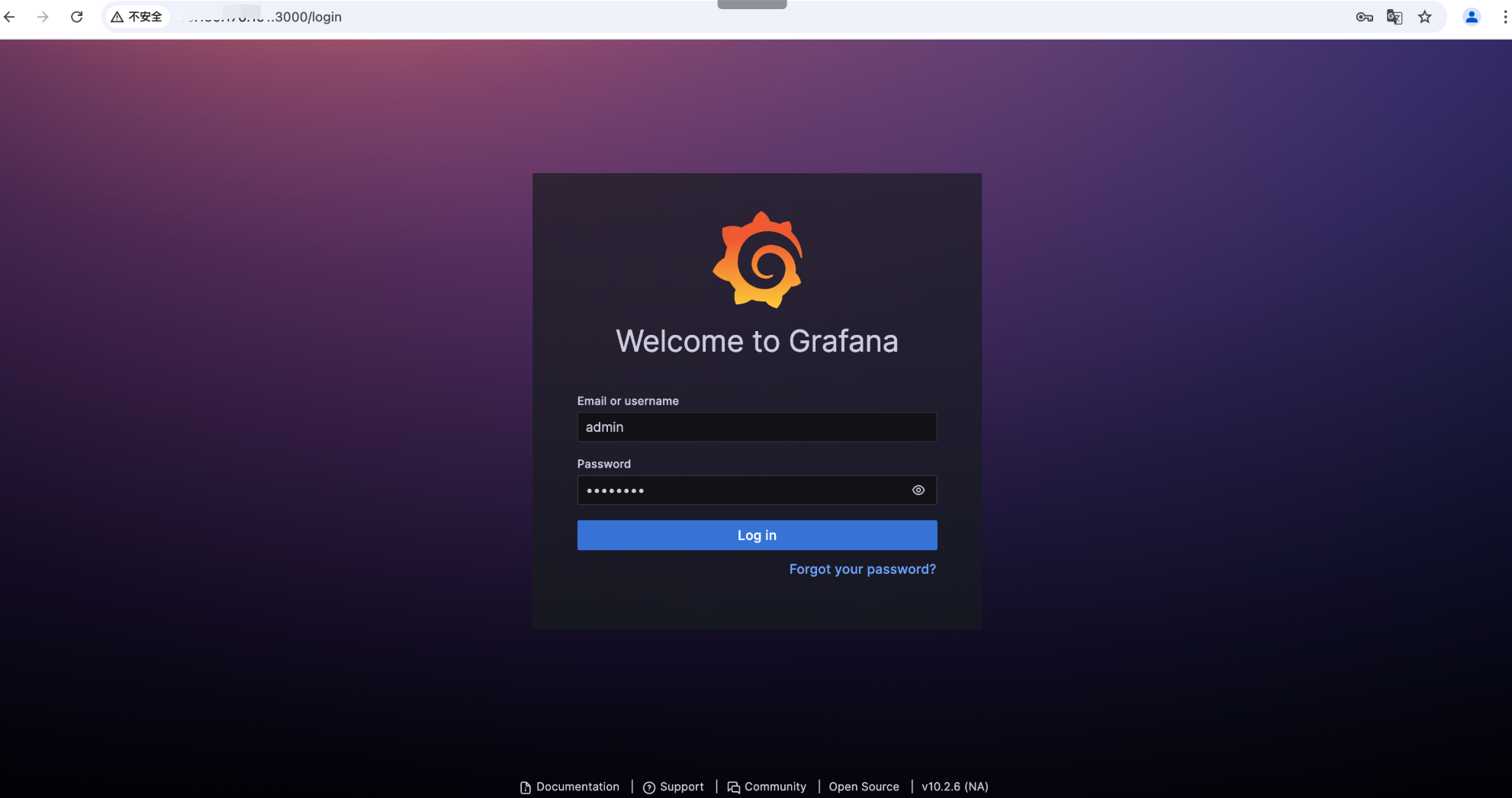 使用浏览器访问 3000 端口,输入登录账号和密码,启动 Grafana 监控。