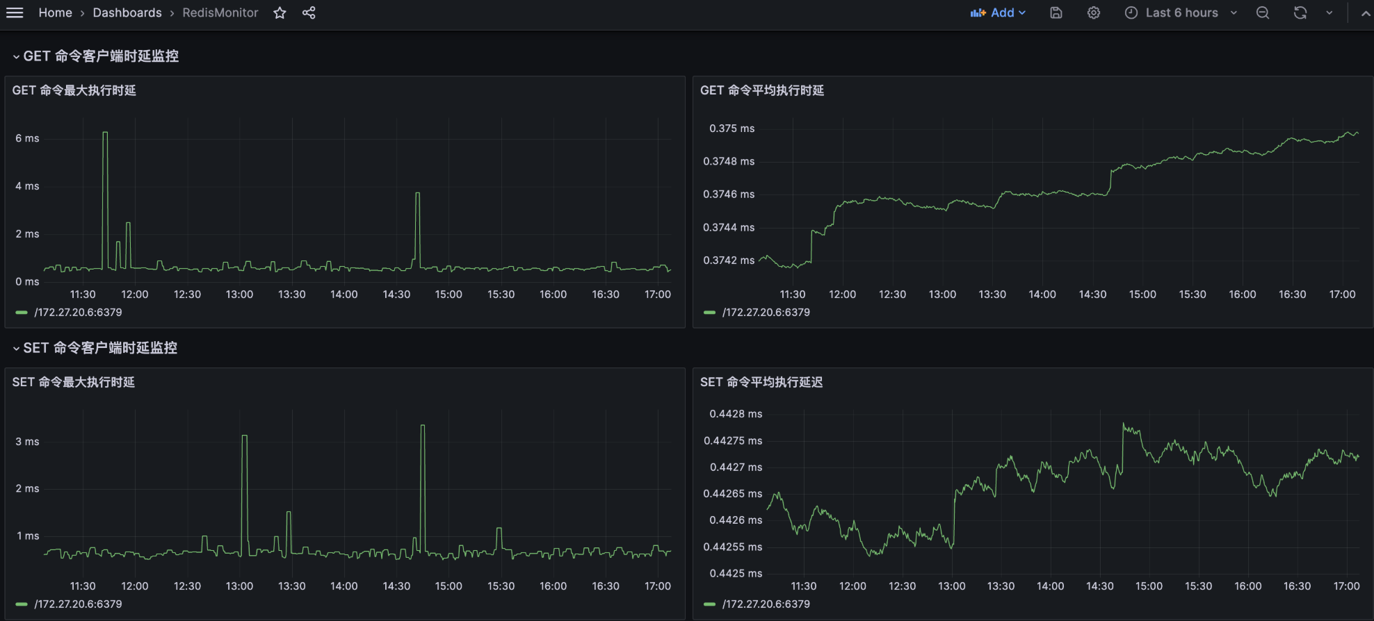 本示例仅展示了 `SET` 命令和 `GET` 命令的平均时延和最大时延监控。您可以根据自身需求,扩展监控范围,添加更多命令时延监控。