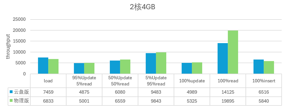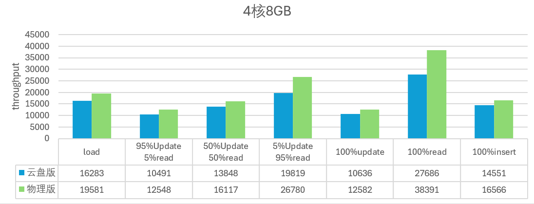 规格类型 | 压测比例 | 磁盘(GB) | 数据量(条) | 并发线程数 | throughput(ops/sec) | RAL(us) | WAL(us) | CPU 利用率 |