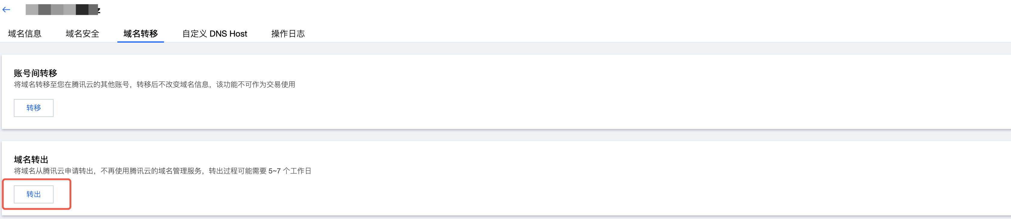 将域名从腾讯云域名服务转到其他域名注册商内,由其他注册商为您继续提供域名服务,我们称之为域名转出。转移过程大约需要5 - 7个工作日,域名转出意味着您的域名不再享受腾讯云的域名服务,请谨慎操作。