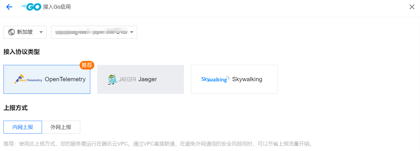 2. 在接入指南页选择接入协议类型和上报方式。