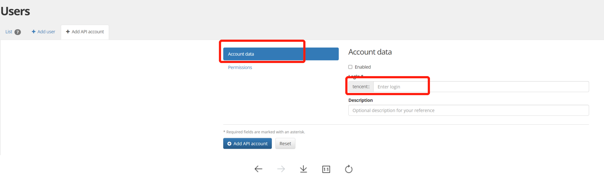 使能新建 API 账号: