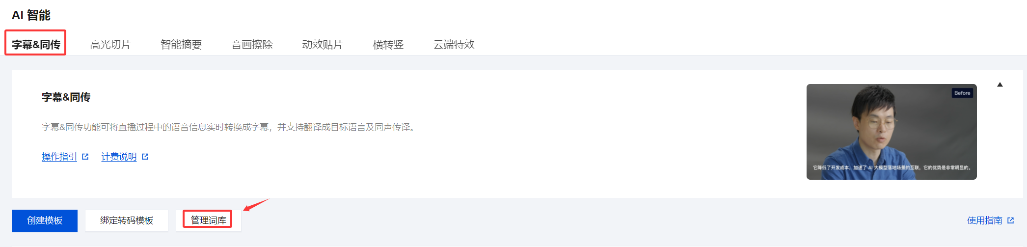 直接导入 | 可以根据您的实际业务需求,您可以选择从计算机上传文件或使用常用词库功能。 选择文件 若您需要导入术语,可以手动开启直接导入术语的功能。单击“选择文件”,然后从您的计算机中选择要上传的文件。上传的文件请确保符合以下要求: 文件格式:TXT。 文件大小:100KB以内。 文件编码:UTF-8或GBK编码。 常用词库 可直接选用预设词库。 |