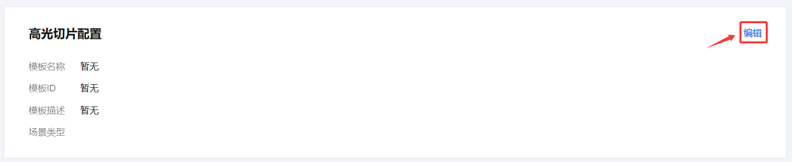1. 进入 域名管理,单击需配置的推流域名或管理进入域名详情页。 2. 选择模板配置页签。单击高光切片配置标签右上角的编辑。 3. 根据您的业务需求选择高光切片配置模板,然后单击确定即可完成配置。